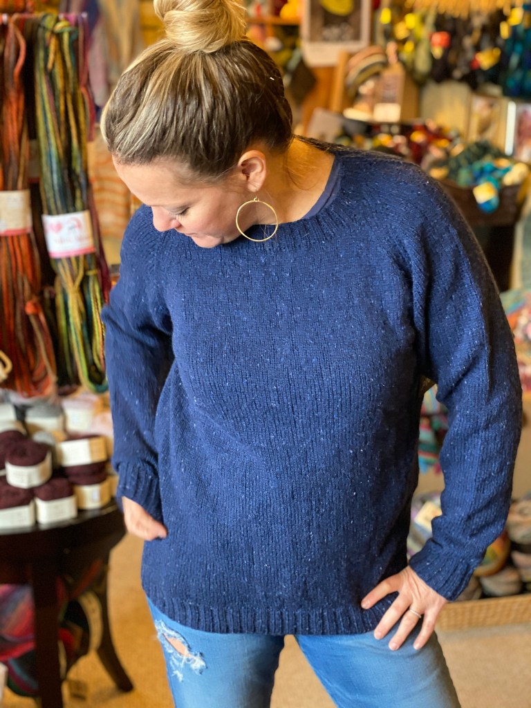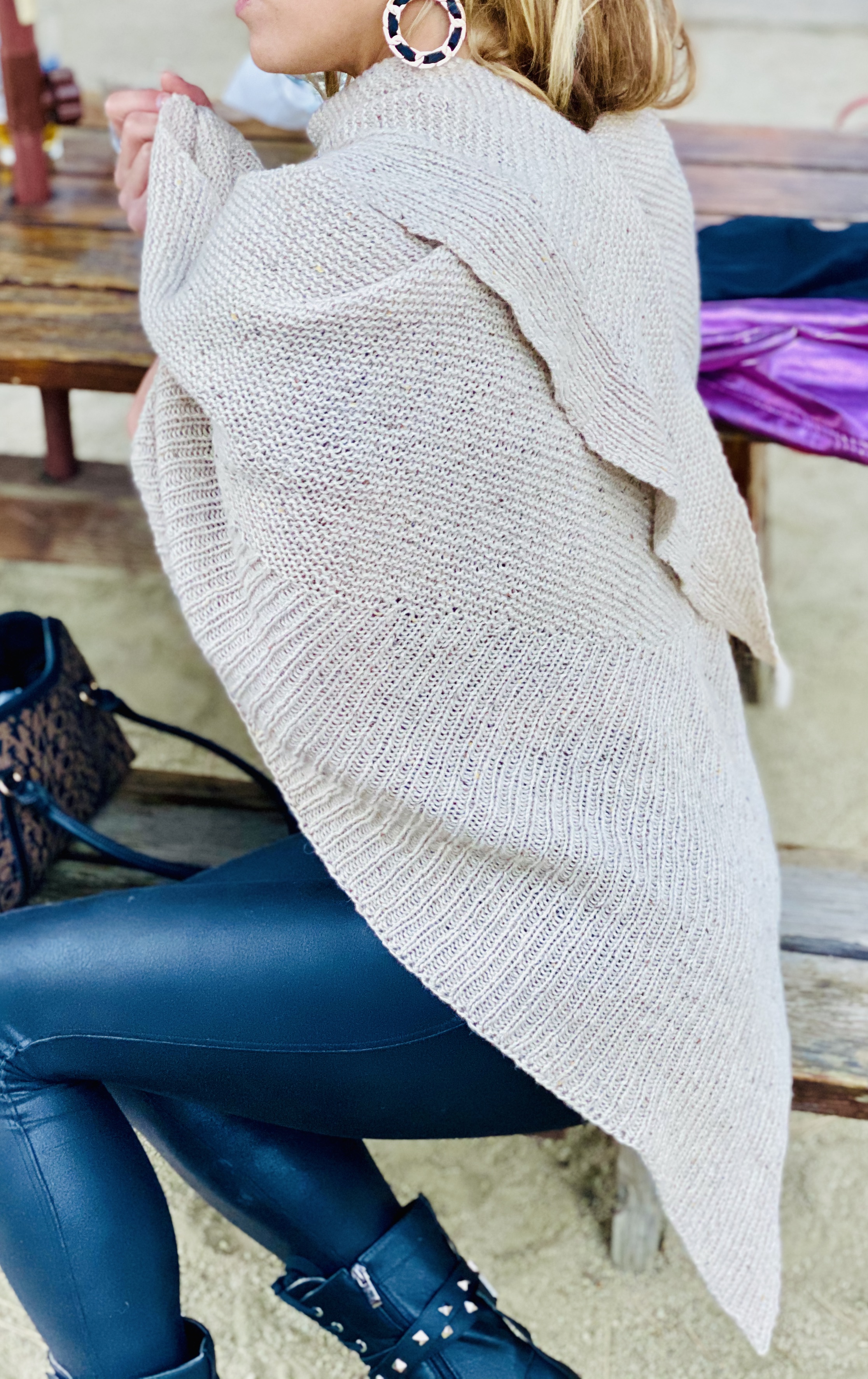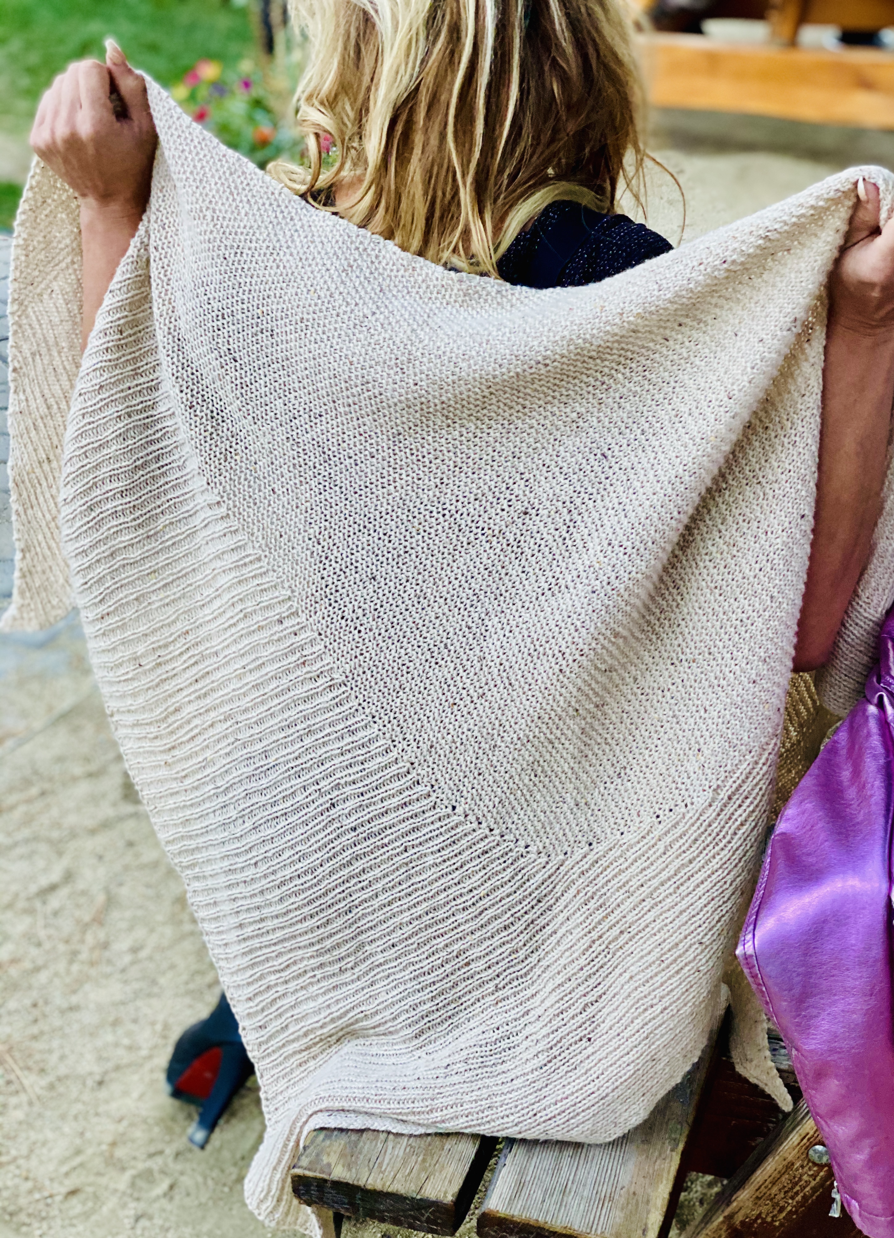 With the temps dropping and the sun setting earlier, it’s the perfect time of year to wrap yourself in a cozy shawl and get craftin’! This beautiful all-seasons piece was a cinch to knit up. The Wildberry Shawl by DreaRenee Knits in Jody Long “Alba” – a beautiful tweedy merino yarn. I decided to just keep on knitting so I could fully wrap myself in warmth. 🙂