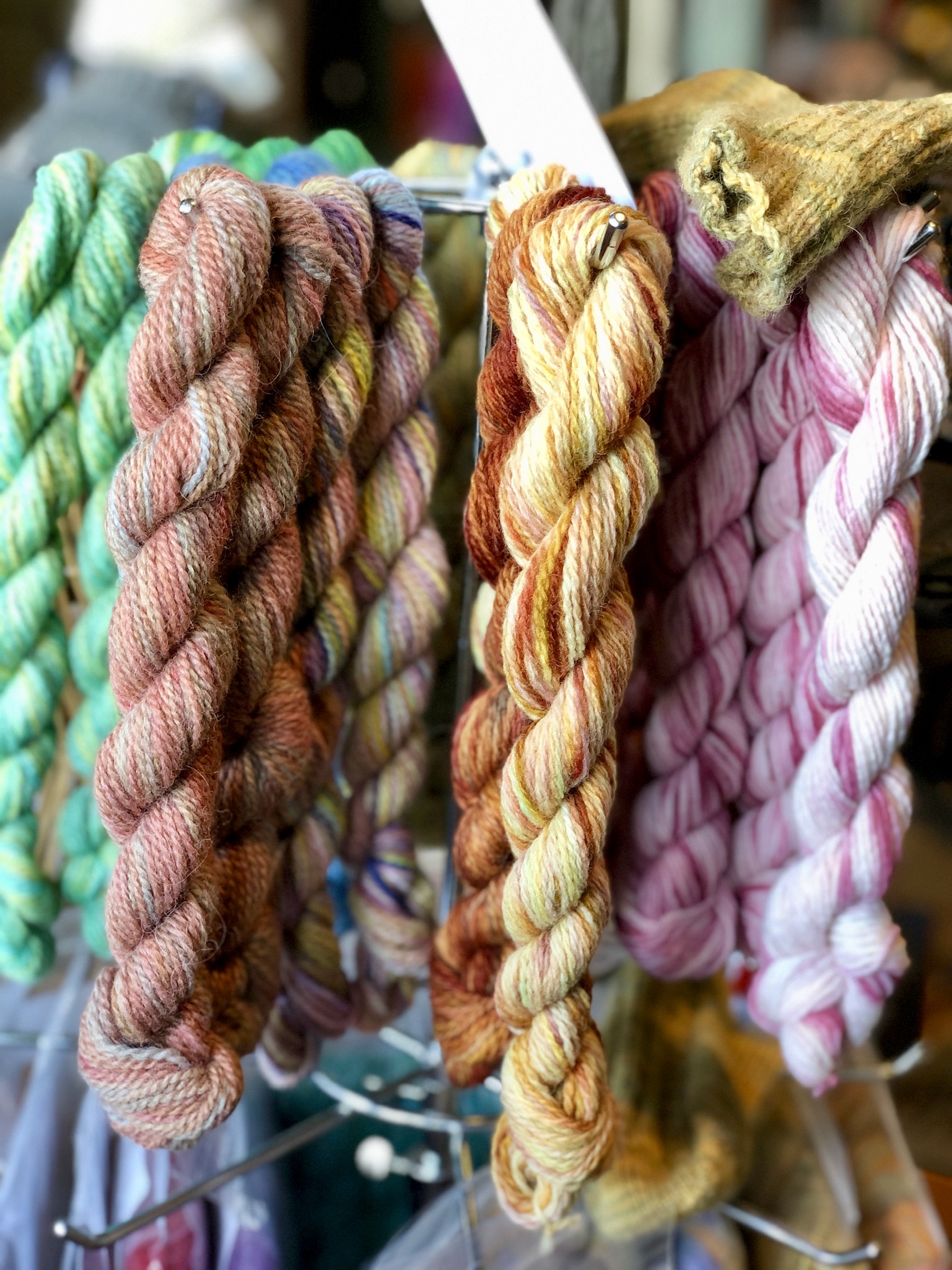 Also locally made – Fibres by Ramona. Hand spun and dyed in Carson Valley, this sock yarn is soft to touch with the durability needed for wearing. Included in a 4 pack (enough for a pair) is a stitch marker! And they’re on sale!