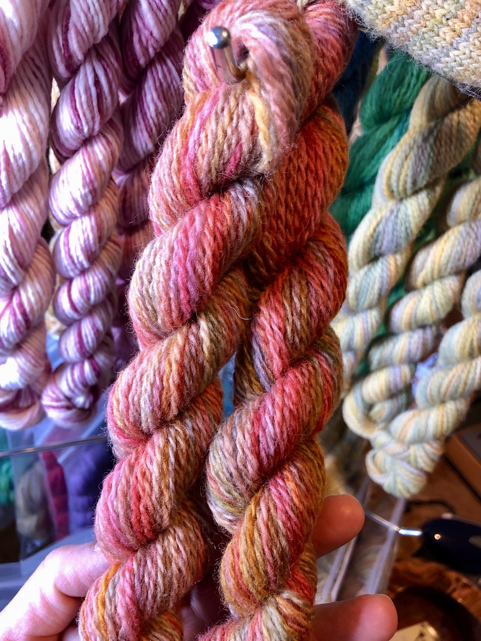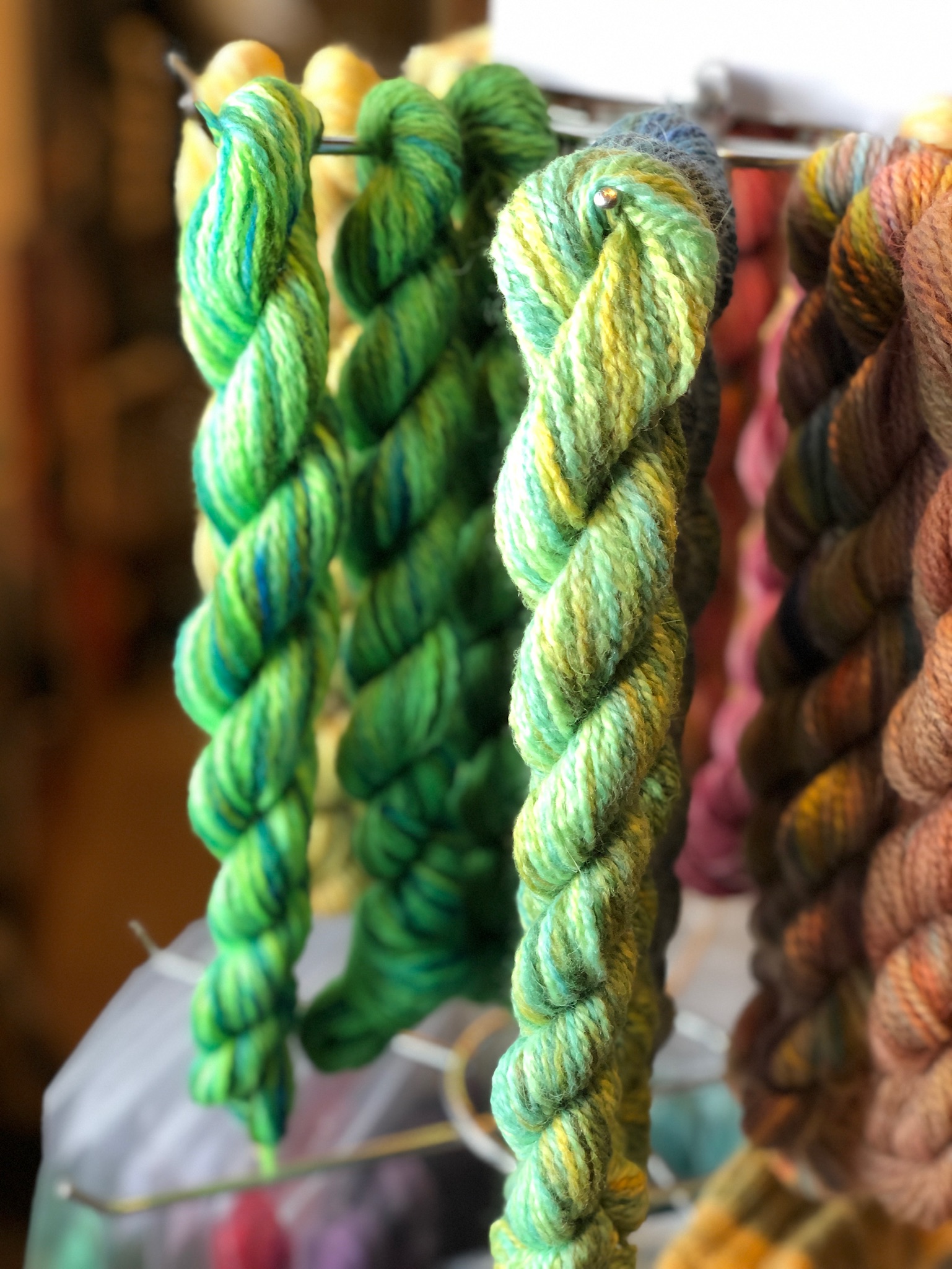 Another favorite for locals and fiber lovers everywhere – Valkyrie Fibers. I was lucky to snag a few skeins from Knits and Knits and have one set left! Loving these on my dreareneeknits‘ Marley Shawl – BRIOCHE FOR DAYS! Side note: if you’re not familiar with DreaReneeKnits – please check out her website. She’s absolutely amazing!!!!!