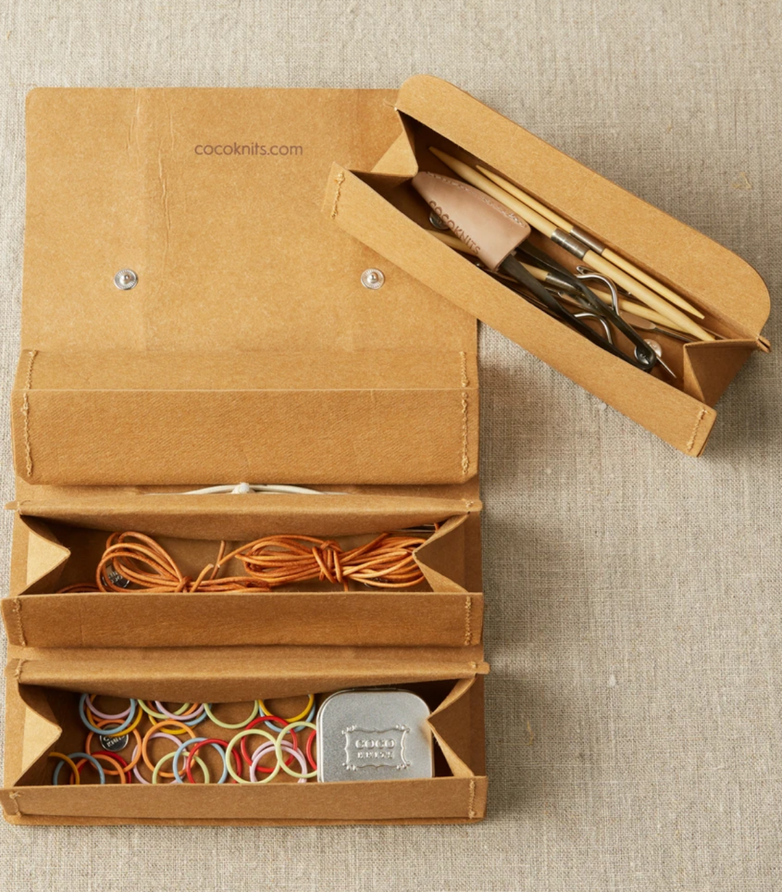 And…. Just in! These very cool (and super smart and useful) Row Counters, Stitch markers and Accessory Rolls for allllllllll your knitting and crocheting goodies.