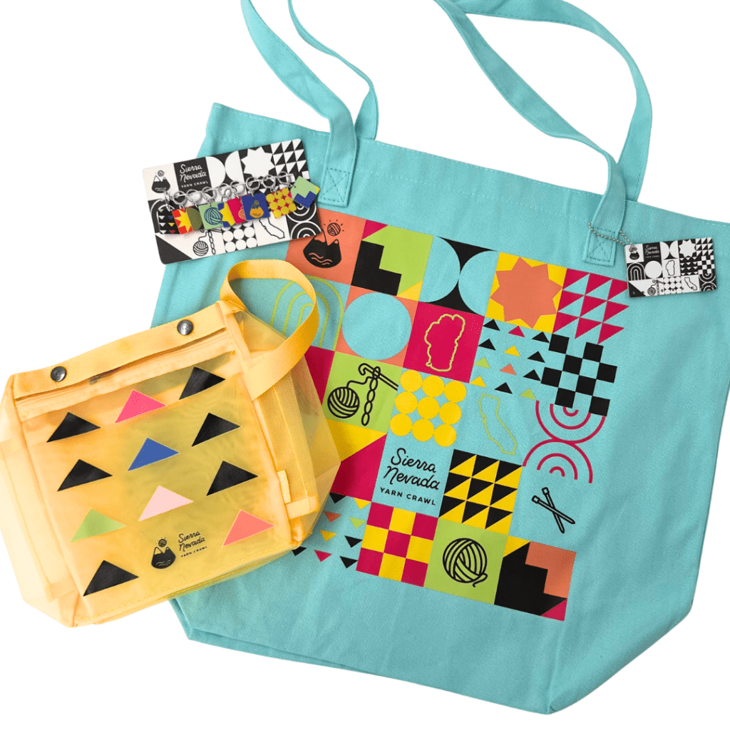 Starting today – all Sierra Nevada Yarn Crawl swag is available to purchase online, or in store. Shop the items here! We can ship to you or you can pick up in the store ahead of or during the crawl.